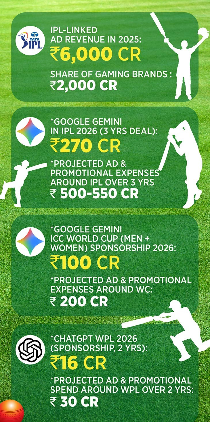 - Gemini secured a ₹270-crore, three-year partnership with the BCCI starting IPL 2026, integrating AI into various fan experiences, while ChatGPT has also partnered with the Women’s Premier League for the 2026–27 cycle.